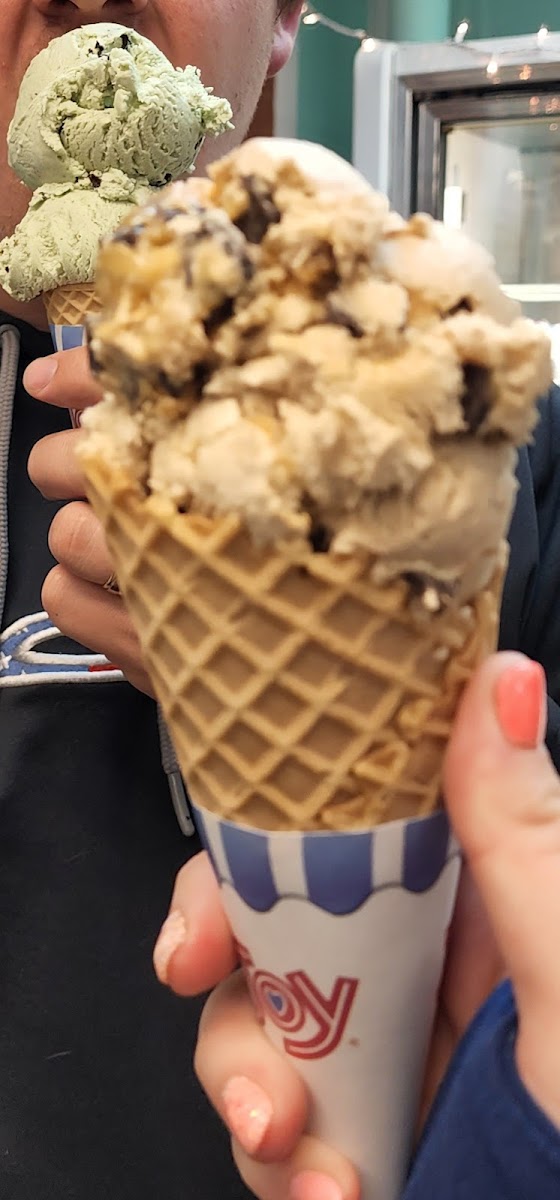 They have really good ice cream here! It's a really nice family owned, homemade ice cream place and we love coming here. The staff is really nice and they'll let you sample all of the different flavors.